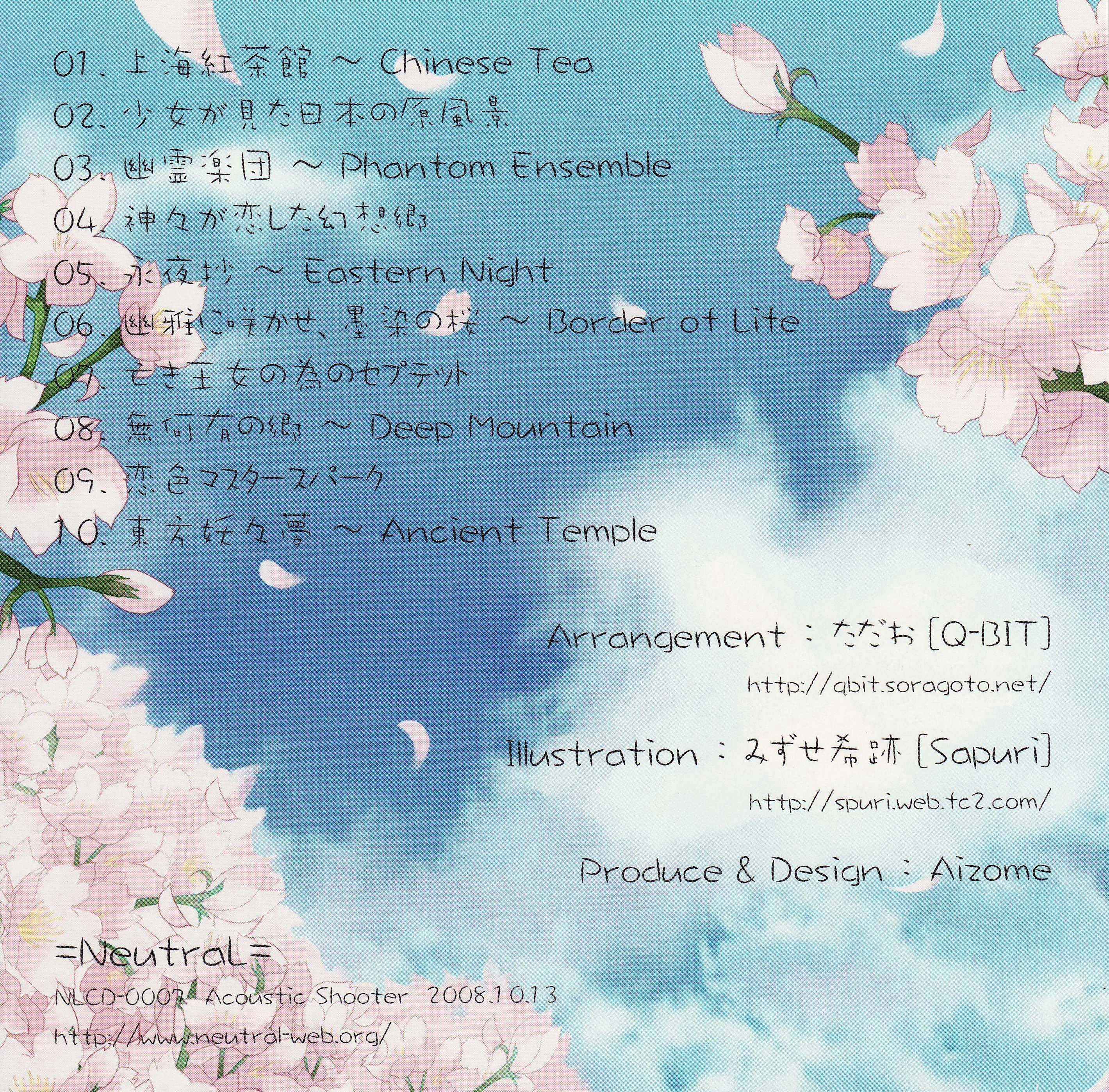 | - | (06) [ただお] 幽雅に咲かせ、墨染の桜 ~ Border of Life.flac | 23519463 | | =NeutraL= | Acoustic Shooter | 6 | ただお | 幽雅に咲かせ、墨染の桜 ~ Border of Life | 114 | 203 | 903 | 922 | | flac | | | flac | 2025-06-14 20:58:59 |