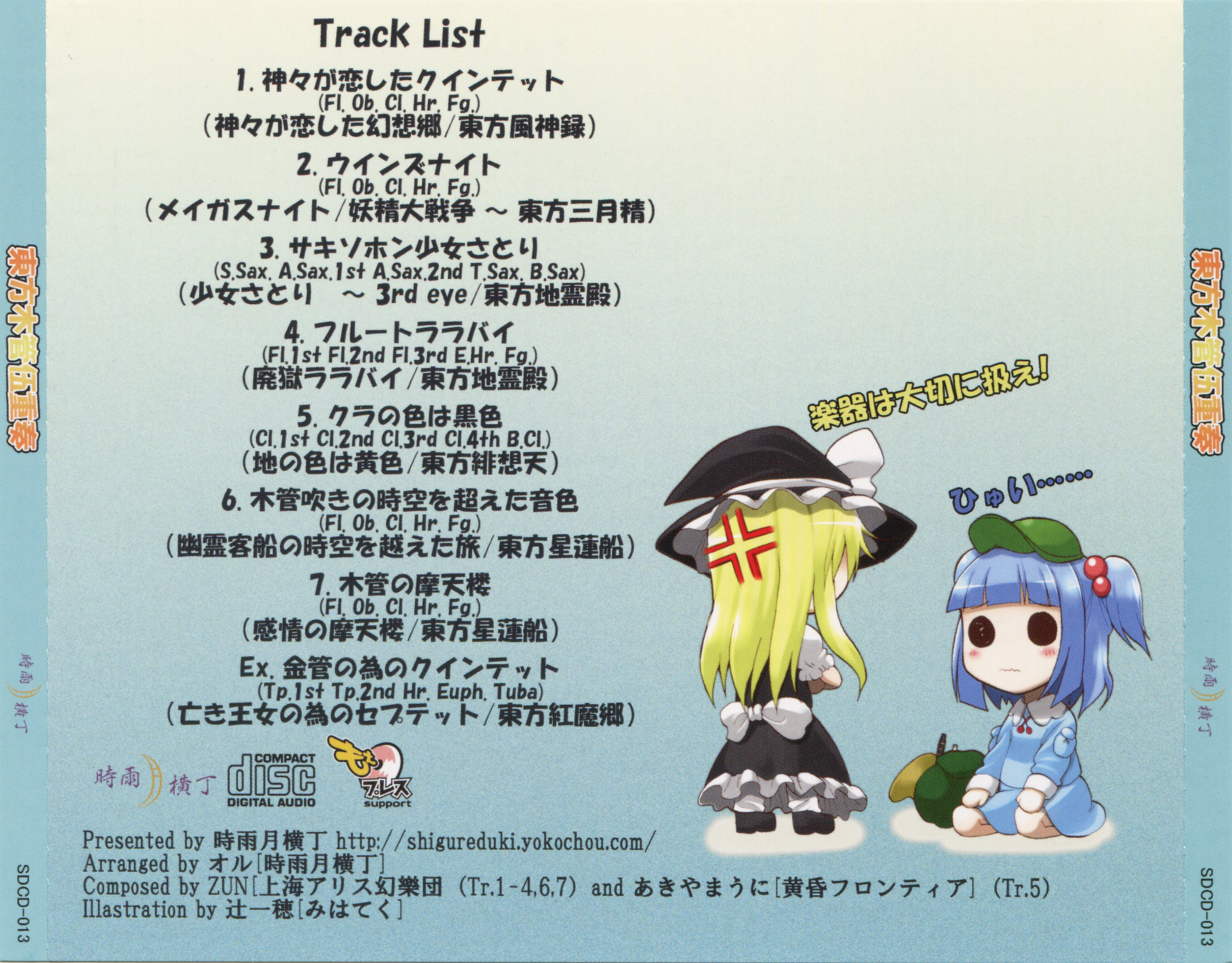| - | (07) [オル] 木管の摩天楼.flac | 26474096 | | 時雨月横丁 | 東方木管伍重奏 | 7 | オル | 木管の摩天楼 | 77 | 248 | 830 | 847 | | flac | | | flac | 2025-10-06 13:50:58 |