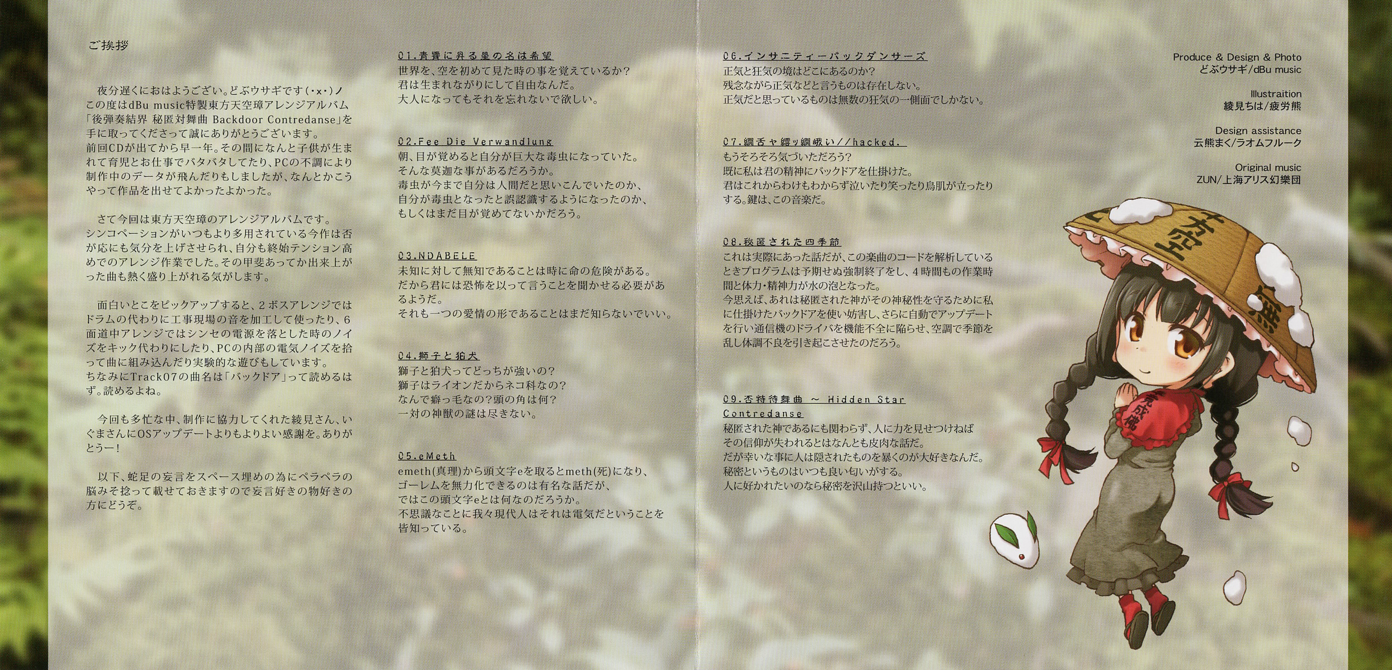 | - | 06. インサニティーバックダンサーズ.flac | 31828487 | | 後弾奏結界 秘匿対舞曲 Backdoor Contredanse | 6 | dBu music | インサニティーバックダンサーズ | 217 | 1143 | 1166 | | flac | | | flac | 2025-08-28 15:50:47 |